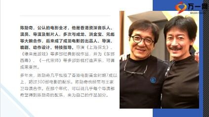 陈勋奇,公认的电影全才,他是香港资深音乐人、演员、导演及制片人,多次与成龙、洪金宝、元彪等大腕合作,后来成了成龙电影的出品人、导演、编剧、动作设计、特技指导。导演《上海探戈》、《缘来是游戏》等多部经典影视作品,并为《东邪西毒》、《一代宗师》等多部影视打造声乐,可谓成果斐然。