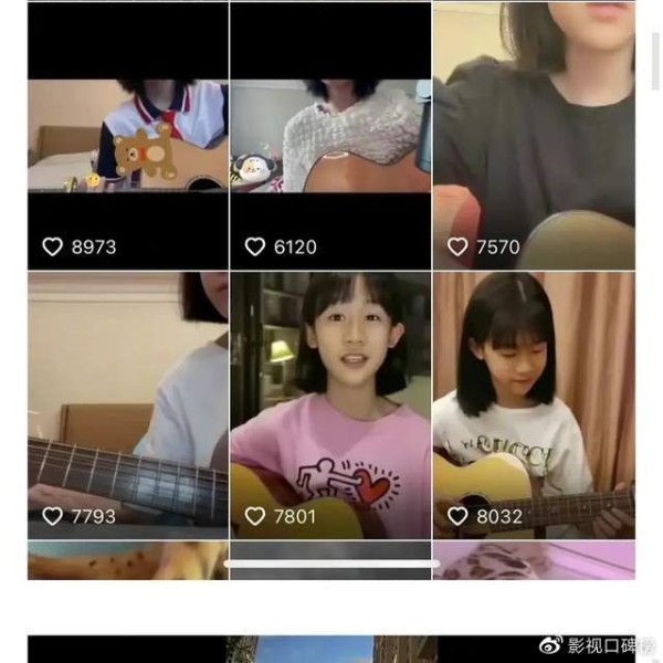 顺藤摸瓜,大家爬着去看了贝儿的社交平台。不同于其他明星孩子过着人上人的精英生活,贝儿的视频全部都是一个人在安安静静地抱着吉他唱着歌,连脸都不露,有些视频甚至穿着校服,系着红领巾就直接开录。岁月静好的样子,忽然就感觉到了一阵治愈,无形中圈了不少的粉。