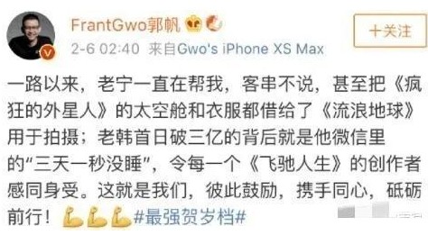 因为郭帆天天拉着龚格尔谈理想啊,我们这个流浪地球的剧本如此伟大,只要拍成了一定可以轰动世界,这辈子都值了。