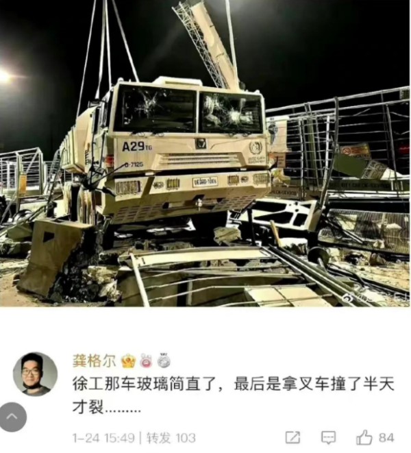 有一幕戏要凸出灾难感,需要把玻璃砸成破碎的样子,结果徐工的防弹玻璃就是砸不碎,最后龚格尔让人拿叉车直接撞才总算给弄裂了。