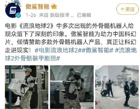 电影里用的外骨骼机器人,是傲鲨智能负责制作的,但全部白送。