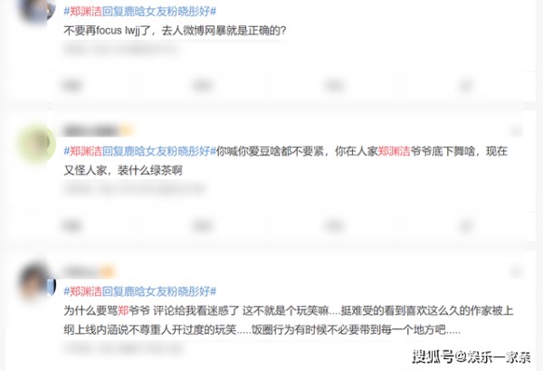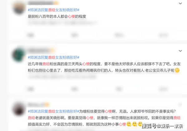 其实小编觉得大家对郑渊洁不需要有这么多的恶意,因为他并不是在针对鹿晗的粉丝。像此前,有网友直言自己是张杰老婆的时候,他也是直接回复“谢娜好“,诸如此类的有很多,他仅仅是将已经认定的关系和身份说出来,并非是有意中伤鹿晗的粉丝,还希望各家可以稍微体谅一下。小伙伴你们对此有什么看法呢?