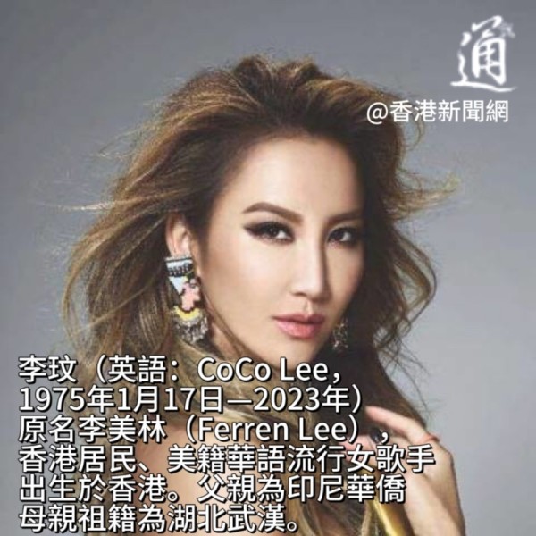 香港中通社7月6日電(記者 張明臻)7月5日晚,歌星李玟CoCo的姐姐李思林發長文,告知大眾李玟因抑鬱症在家中輕生,經搶救無效,於5日去世,終年48歲。