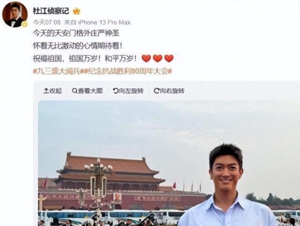 要知道,去年9月3日,北京天安门广场举行了庆祝中国人民抗日战争胜利80周年的大会,杜江作为受邀代表,去现场看阅兵,接受采访时还说自己蛮激动