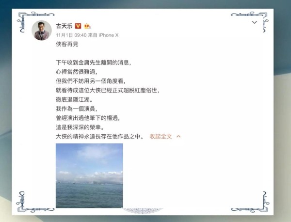 在华语娱乐圈中,众多演员曾饰演过金庸笔下的经典角色,如“小龙女”、“韦小宝”和“杨过”等,他们纷纷通过社交媒体表达对金庸先生的缅怀之情。