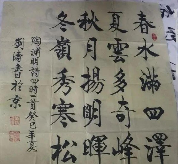 刘涛的魏碑功底很深,用笔刚劲有力,用墨均匀,布局得当,表现出一种粗犷豪放的风格,颇有几分古人书帖的韵味。