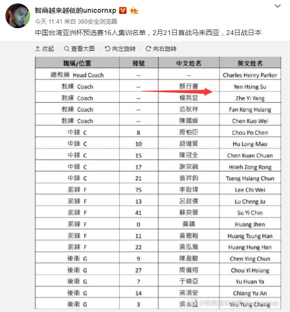 北京时间2月15日,亚洲杯预选赛即将拉开大幕。中国台北也公布了大名单,在首席助教的名字里发现一个老熟人,那就是颜行书。这个曾经混迹娱乐圈,打过CBA,也拿到过亚锦赛助攻王的大帅哥,还是活跃在篮球赛场上。