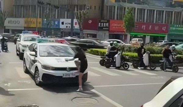 监控拍得清清楚楚:穿荧光执勤服的交警后退两步保持安全距离,她却把执法记录仪当成了直播间补光灯,突然扑向驶来的警车逼停,拽车门、拍引擎盖的动作一气呵成,活脱脱现实版“速度与激情”。