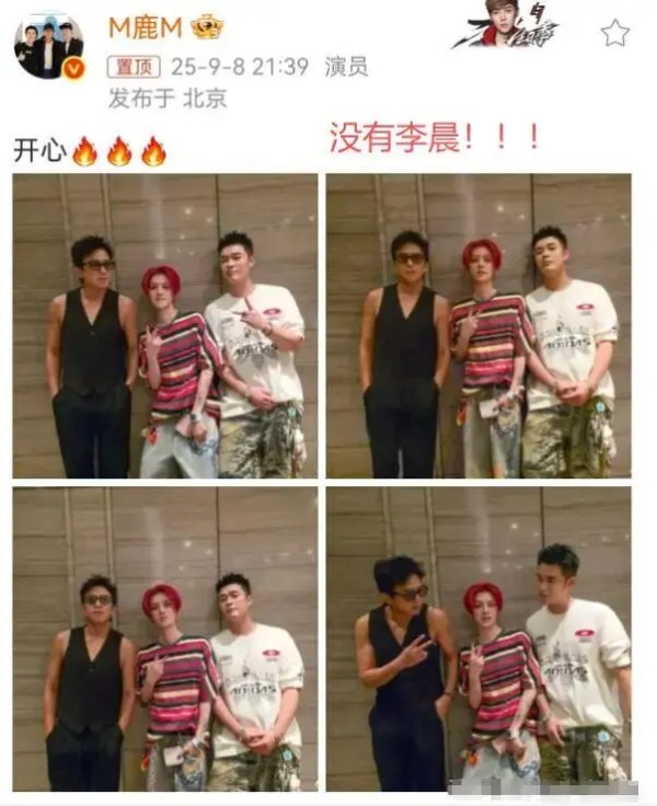 他真的发了。可是几个小时后,鹿晗也晒出了现场的合照,照片里却只剩下了他、邓超和陈赫。