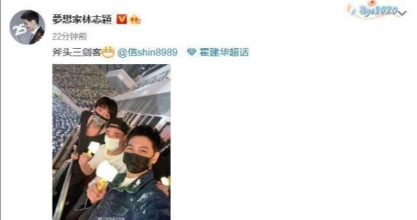 林志颖25日在微博上晒出了他和霍建华、阿信在蔡依林演唱会的合照,称自己为斧头三剑客。林志颖和霍建华在照片上手持援助灯,霍建华将手放在林志颖身上,看来两人关系不错。