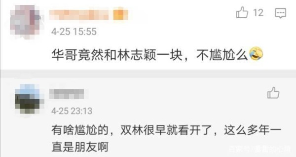 林志颖晒出与霍建华合照的照片后,又有网友问:“华哥竟然和林志颖一块儿,不尴尬吗?”而且有网友在陈若仪的微博下评论“林心如,她不是你的情敌吗”,似是对这对夫妇的关系感到好奇。但也有网友表示,林心如和林志颖两人早看过电影,现在两人是很要好的朋友。