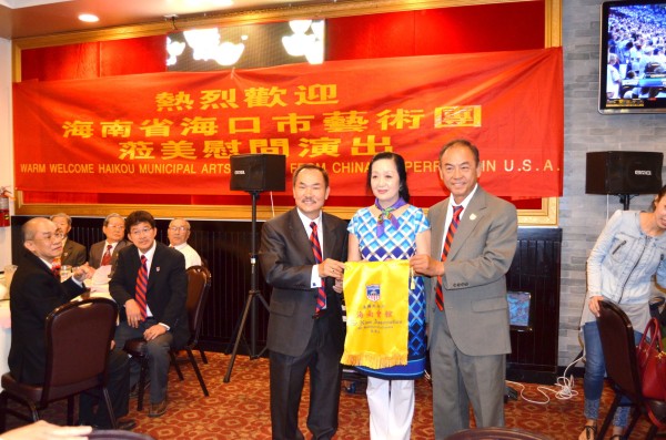 2014年海口市艺术团赴美国南加州海南会馆会长为蒙麓光女士赠送锦旗252023.04
