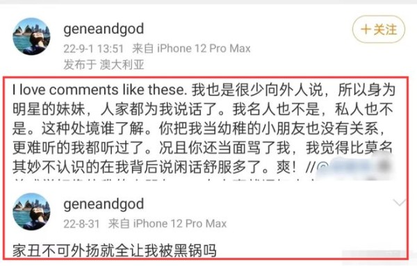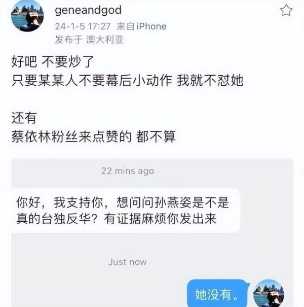 粉丝互撕的时候,也知道往七寸打,这次趁着孙燕姿姐妹的矛盾,不仅将此前孙燕姿演唱会卖不出票的事,又被翻出来嘲笑,甚至直接私信孙燕美,让她将姐姐孙燕姿“歪屁股”的证据也直接发出来,彻底把她锤死。