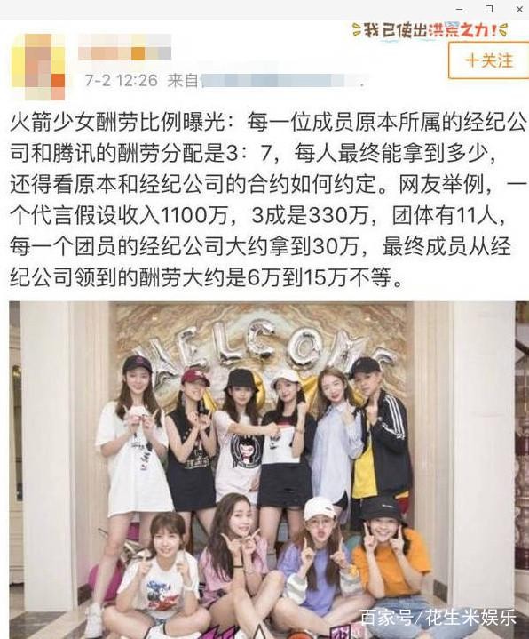 网友曝光火箭少女酬劳比例:原公司与腾讯三七分