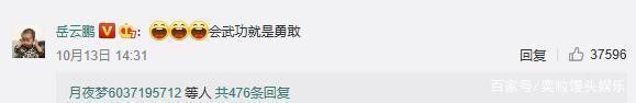 对此岳云鹏直接在微博下面留言“会武功的人就是勇敢”。