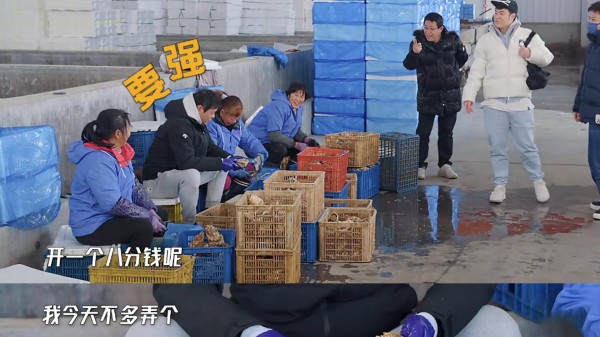 经过一夜奔波的范志毅头发凌乱,一脸愁容,但因为输了游戏,又不得不帮大家开生蚝。