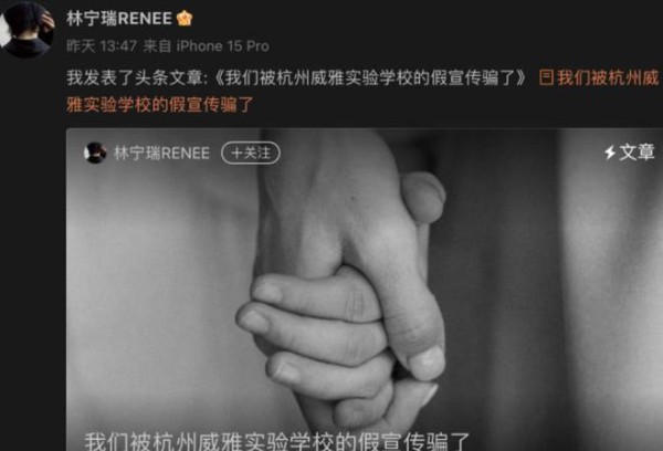 2024年1月2日,演员郝劭文的夫人林宁瑞女士在网上发表帖子,公开了其8岁女儿正在遭遇校园暴力事件。