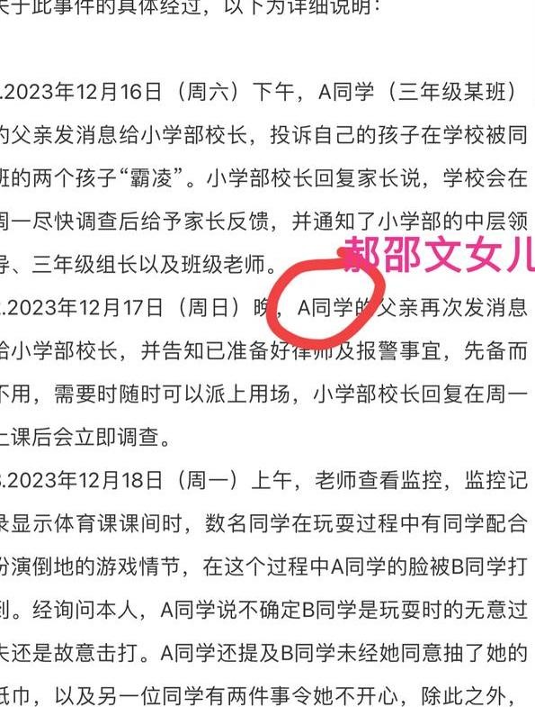 学校通报“郝邵文女儿被霸凌事件”:同学主观上不存在蓄意或恶意,未认定该事件为“霸凌行为”