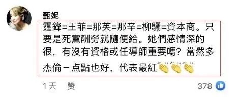 一代歌后,徐小凤、汪明荃、甄妮三位女神,当年可是红遍了港澳东南亚,歌坛上的统治者,四连霸最受欢迎女歌手。这样的辉煌成就,批评一下谢霆锋、王菲、那英,有什么不可以嘛?