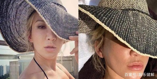 她将帽子轻轻拉下遮挡刺眼的阳光,露出精致的下颔和身材依然在线。