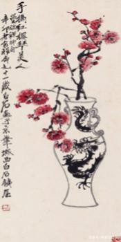 后来又有一次,老舍先生再次给齐白石先生出了一个难题,这次是要画一副"美人图",前提是画中不能出现美人。而齐白石先生再次给出了完美的答案,他的画作上的确没有美人,但却画出了让所有人都认可的"美人图"。只见他的画上面画着一个花瓶,花瓶里插着鲜艳的红缨,从整体上看,这个花瓶就像是一位亭亭玉立、婀娜多姿的美人一样。最后为之提名为:"手摘红缨拜美人"。老舍见了连连称赞,的确是妙不可言。仅仅用一个花瓶就隐喻了美人,想法之绝妙,令人赞叹。而这幅画也成为了永恒的经典之作。