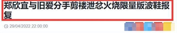 4月29号,据港媒消息称,郑欣宜最近事业爱情双丰收,并于近日做客采访节目,节目中她在演唱《报复式浪漫》的时候,畅谈过往的分手经历,并承认对旧爱做出报复式行为。