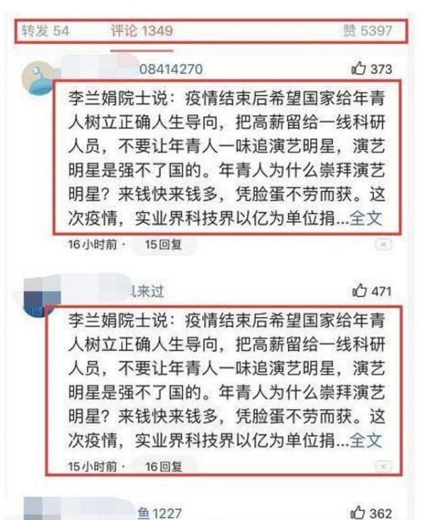 因为在网上分享了自己过44岁生日时的照片,网友们在她的是社交帐号评论区用李兰娟院士建议控制明星高薪酬时的发言刷屏。