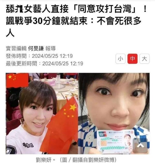 大陆网民还专门把长期在大陆居住、工作的台湾艺人黄安、刘乐妍放到例个里,因为无论是黄安还是刘乐妍,都是众所周知的反台独斗士,其支持国家统一的立场是鲜明的。
