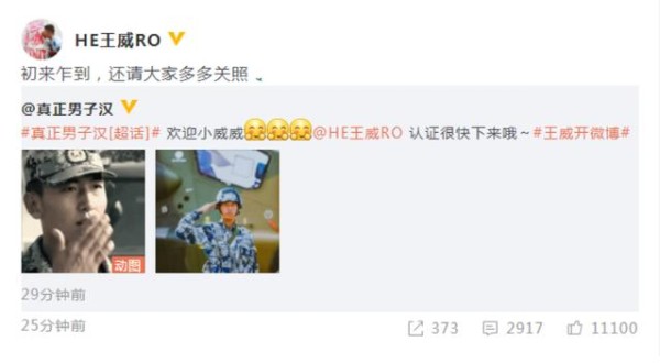 《真正男子汉》王威虽已退伍,但开通了微博,还关注了杨幂
