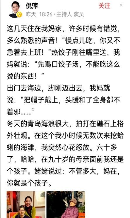 倪萍在自述中写下过一句话:在妈妈眼里,自己好像从未做过对的事。