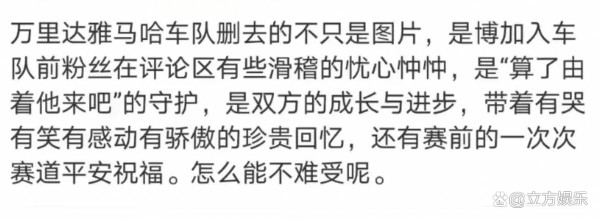但是没想到这次车队突然就做出了这个决定,也没有给出任何的官方解释,也让很多粉丝感到疑惑,一时之间各种声音都有了。有网友认为其实还是跟这些明星有关。之前王一博参加比赛的时候,的确让很多不太了解这个领域的网友都开始关注到这个比赛。