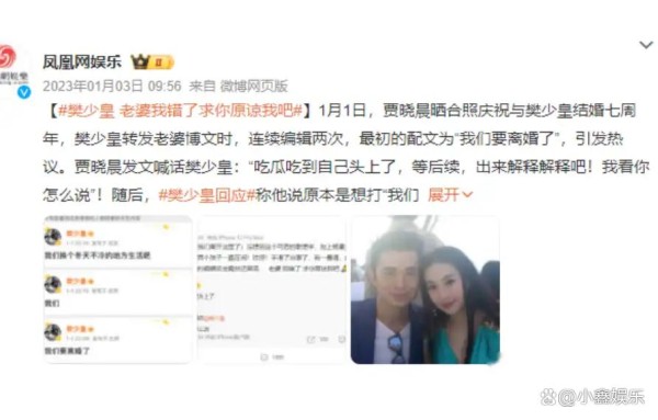 樊少皇与贾晓晨结婚七周年,妻子发文庆祝,樊少皇转发暗示离婚