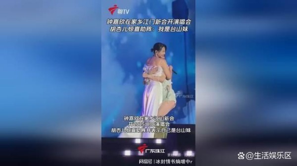 胡杏儿作为特邀嘉宾登场时,现场爆发出当晚最热烈的欢呼声。 两位同样来自江门的TVB前花旦在台上用家乡话聊天,胡杏儿打趣道:“我们两个江门妹站在这里,是不是很配? ”钟嘉欣笑着接话:“你知唔知,我特意请你来,就是因为我们都系新会人。 ”