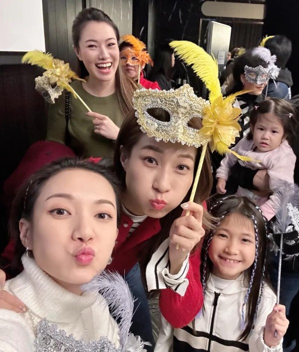 生日会现场气氛融洽。虽然王君馨已经怀孕,但她仍然开心地抱起了钟嘉欣的小女儿Anika,与王祖蓝一家合影。