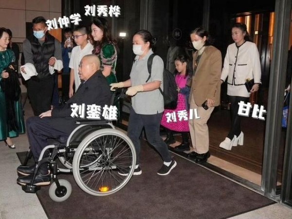 而刘銮雄和甘比一家五口更是浩浩荡荡,刘銮雄虽然坐轮椅前来,但他的气场依然不减当年。
