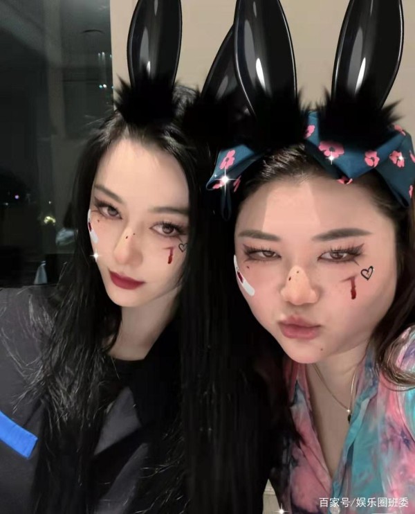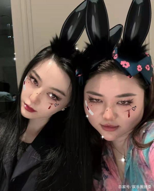 合照中,范冰冰与杨天真脸上都添加了浓妆特效,搭配酷酷的兔子耳朵,范冰冰冷艳,杨天真则显得很可爱,虽然二人脸型完全不同,但仔细看来,她们的五官却越来越相似,更像是一对双生花。