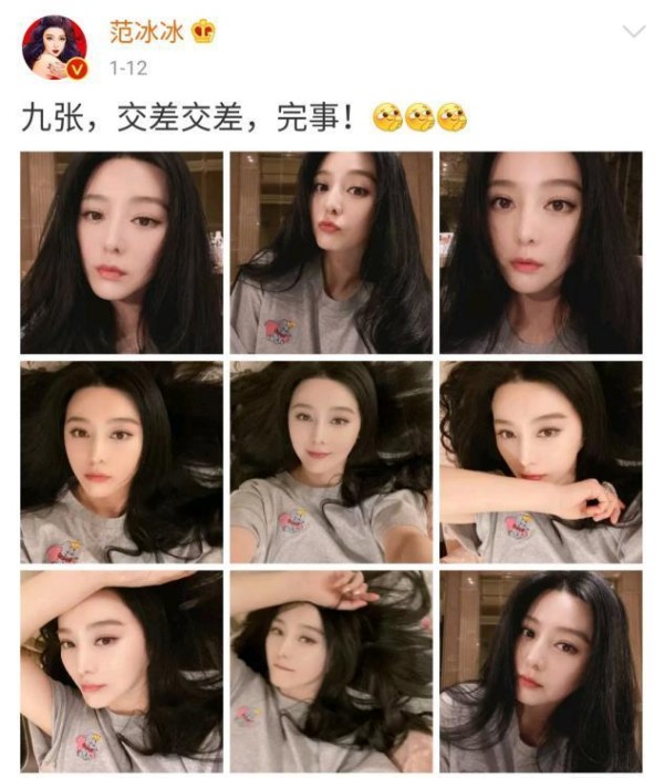 而范冰冰虽然最近在事业上发展缓慢,但她也经常在社交平台上发布自己的动态。近日她晒出自己的九宫格自拍美照,从照片中来看她的状态还是非常不错。
