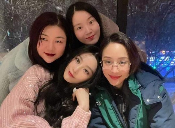而范冰冰毫无巨星派头,像个天真无邪的孩子,依偎在闺蜜身边,侧歪着脑袋露出甜美笑容。其他三人都十分配合范冰冰,将头凑到一块,各个笑得灿烂如花。
