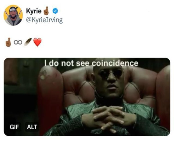 欧文落选后,发了条状态,引用了《黑客帝国》的一句话:“我不认为这是巧合,我看到的是天意。” 这哥们儿,还挺文艺的。