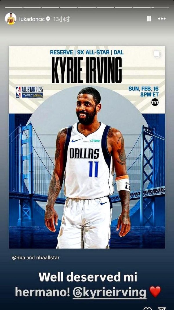东契奇祝贺欧文入选全明星实至名归 欧文:我们是彼此的忠诚朋友