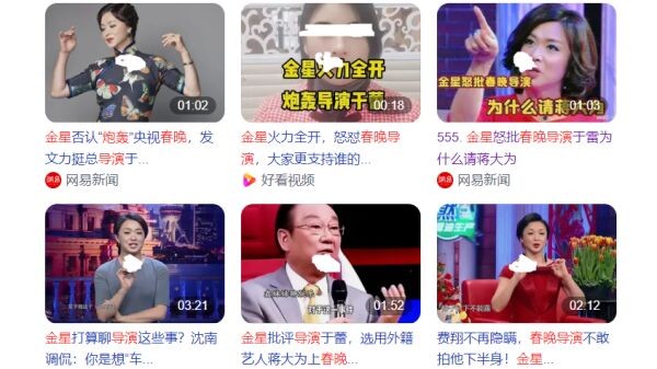 有说“金星火力全开,怒怼春晚导演”的,有说“金星怒批春晚导演为什么邀请蒋大为”的,有说“金星怒批春晚导演邀请外籍艺人”的。