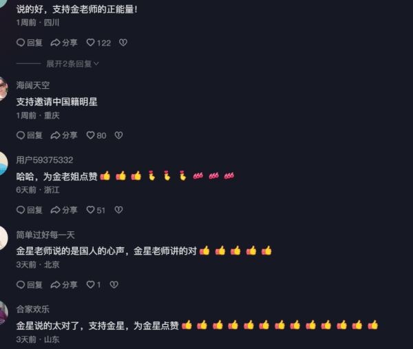 甚至有网友直言,“金星说出了老百姓的心声,正能量。”