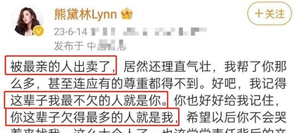 “被最亲的人出卖了。”熊黛林愤怒地表达着,一时间引起了公众的猜测和议论。但在这场风波中,她巧妙地用“最亲密的人”替代了名字,给了读者更多的遐想空间。