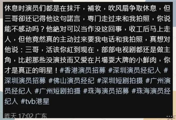 在拍摄的间隙,刘云龙本以为与苗侨伟的合照请求可能就此作罢,然而一个意想不到的转折出现了。正当他忙碌于抹汗补妆时,苗侨伟主动走了过来,递给他一张名片,并亲切地与他合影留念。户外拍摄现场的酷热并未影响苗侨伟的承诺与热情,他专程找到刘云龙,实现了他的诺言。这一时刻,刘云龙深受触动地说:“他完全可以忽略这件事,在收工后立即离开,但他竟然真的记得!”