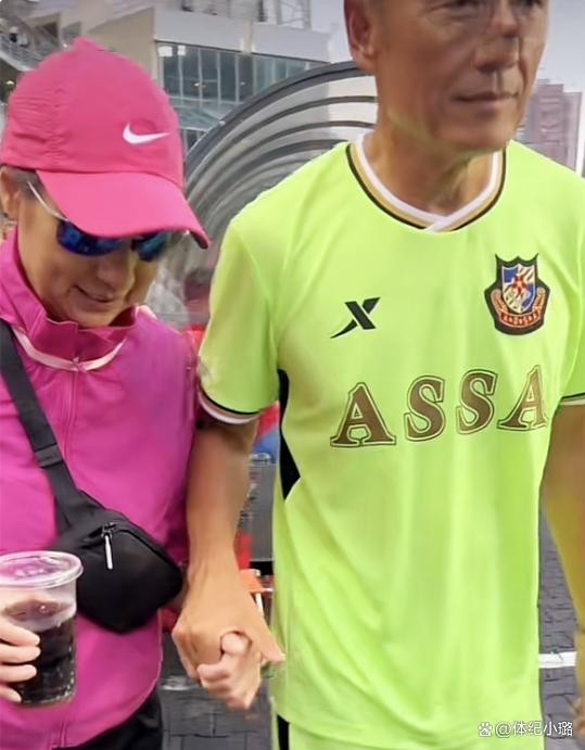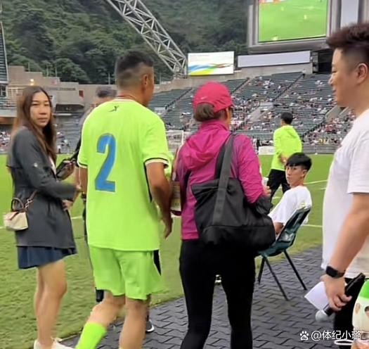更让人惊喜的是,他与一位穿着粉色上衣的女士一同现身,原来她就是戚美珍。这一幕让球场上的粉丝们感到意外,也让人们对两人的友谊和关系产生了更多的猜测。