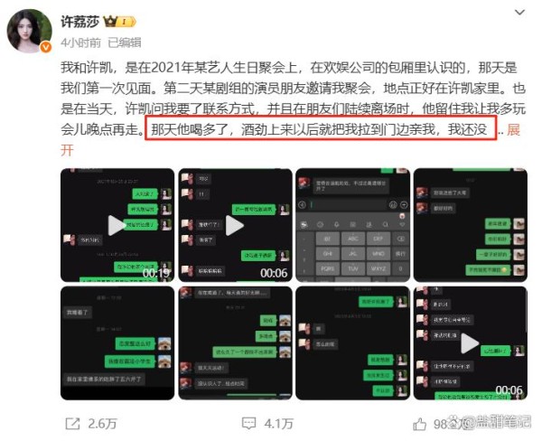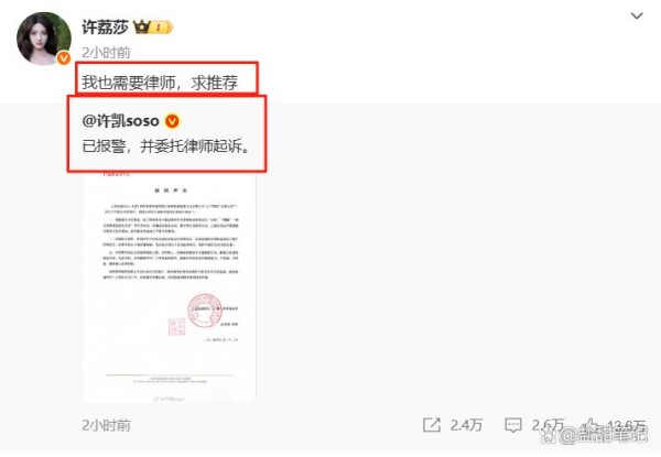 强调许凯与许荔莎“早已无联系”,指责对方“想火蹭热度”,并声称聊天记录“全是假的”,已报J处理。
