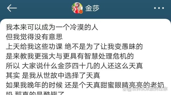 对于网友的猜测,金莎以轻松幽默的语气表示,网友的反应可能只是“瞎操心而已”,试图缓解外界对她和孙丞潇关系的质疑。她在文中强调了对于感情的真诚,同时表达了希望大家能够对孙丞潇更加友好一些的期望。