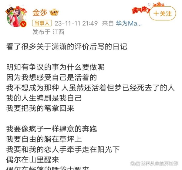 金莎长文回应恋情争议,做自己的人生大女主,发现不爱会果断拜拜
