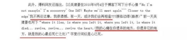 2010年9月份,网友发现吴建豪、石贞善取消了博客互关。其间,吴建豪两次发文,写下“有一天,或许我们会再相逢”、“我的心瘫在你遗弃的地方,你遗弃它的地方,就是我的心最后死亡之处”等“失恋”迹象浓浓的伤心话。