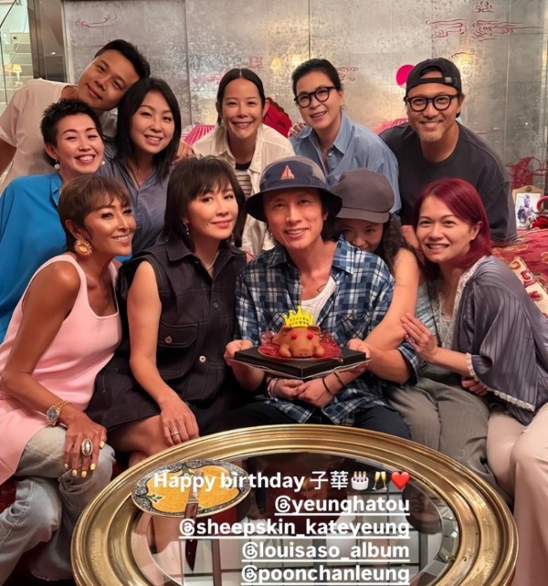 从刘嘉玲晒出的照片看,黄子华面带笑容,手里还抱着蛋糕,坐在中间位置,状态不错,心情也显得特别愉快。